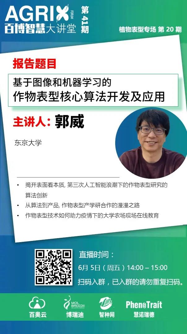 植物表型組學是一門新興學科,近幾年在國內也受到越來越多的關注。但由于植物表型組學涉及不同學科、不同技術、不同尺度、不同維度的交叉應用,因此大家往往感覺“一說就懂,一做就懵”。為此,我們在百博智慧大講堂設置植物表型專場,目前已邀請到來自美國、歐洲、澳洲、日本、中國的20多位專家,將陸續為大家帶來精彩的表型報告。