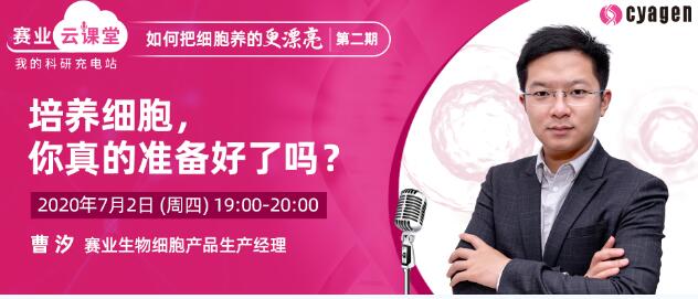 其實微生物污染、細胞狀態迅速變差、實驗結果難以重復這些看似偶然發生的狀況,可能就是當時條件下必然的結果,不能簡單歸咎于操作失誤。細胞培養是一個系統性的工作,培養前的準備、培養后的儲存同樣決定著實驗的成敗。為了能讓細胞有個良好、穩定的生活環境,我們究竟要做好哪些準備呢?這將由賽業生物從事細胞生物學科研工作超過7年的細胞產品生產經理曹汐在7月2日(周四)19:00—20:00為大家進行講解,快免費報名參加吧~