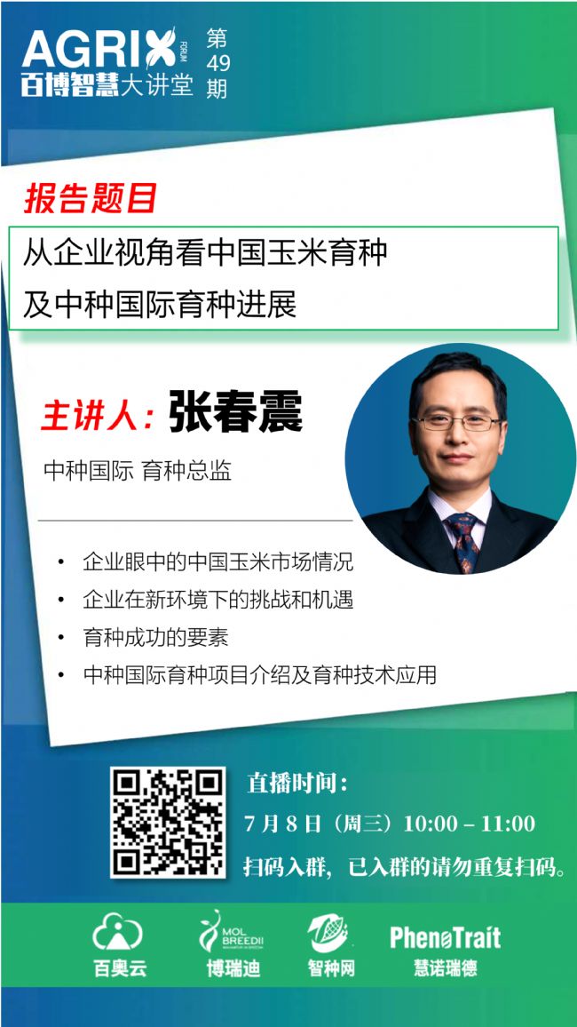 為幫助大家了解知識產權保護、育種研發服務、種質資源托管、基因型分型、基因編輯、表型組學、人工智能和育種大數據等前沿技術,同時也為同行們相互交流提供更多的機會,由百奧云、博瑞迪、智種網和慧諾瑞德等新銳力量秉持資源整合、平臺共享、匯聚眾智、創新引領的原則,聯合組織公益性線上學習平臺——百博智慧大講堂,邀請行業經驗豐富的專家、老師進行線上交流,共同探討新形勢下種業發展思路,共同“破冰”。