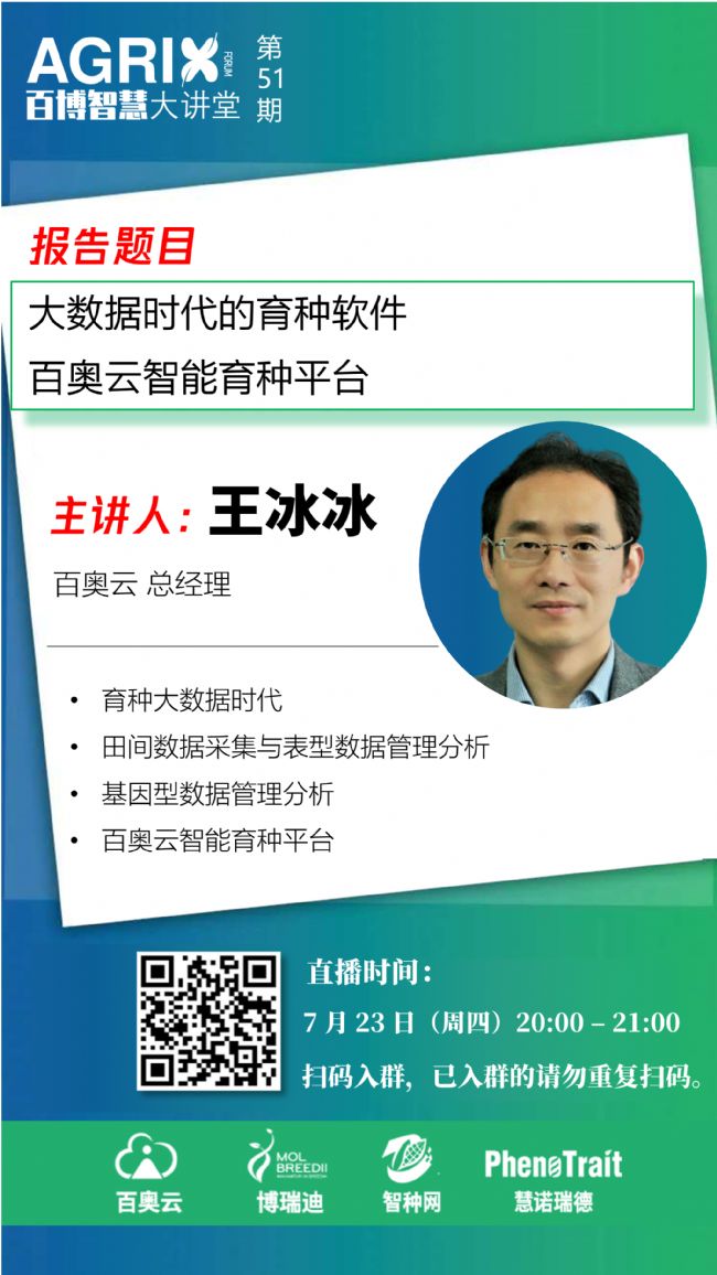 為幫助大家了解知識產權保護、育種研發服務、種質資源托管、基因型分型、基因編輯、表型組學、人工智能和育種大數據等前沿技術,同時也為同行們相互交流提供更多的機會,由百奧云、博瑞迪、智種網和慧諾瑞德等新銳力量秉持資源整合、平臺共享、匯聚眾智、創新引領的原則,聯合組織公益性線上學習平臺——百博智慧大講堂,邀請行業經驗豐富的專家、老師進行線上交流,共同探討新形勢下種業發展思路,共同“破冰”。