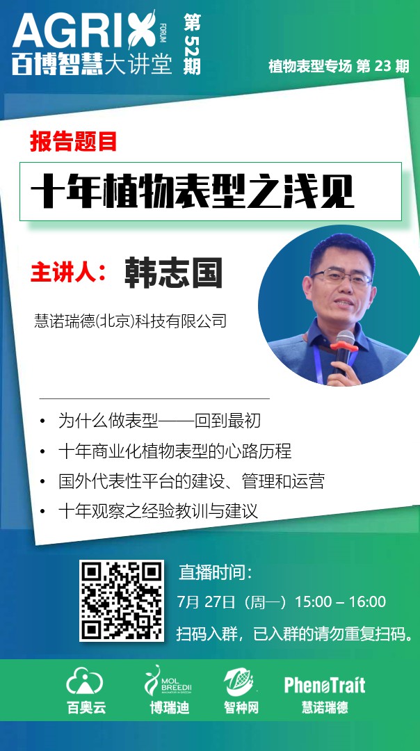 植物表型組學是一門新興學科,近幾年在國內也受到越來越多的關注。但由于植物表型組學涉及不同學科、不同技術、不同尺度、不同維度的交叉應用,因此大家往往感覺“一說就懂,一做就懵”。為此,我們在百博智慧大講堂設置植物表型專場,目前已邀請到來自美國、歐洲、澳洲、日本、中國的20多位專家,將陸續為大家帶來精彩的表型報告。