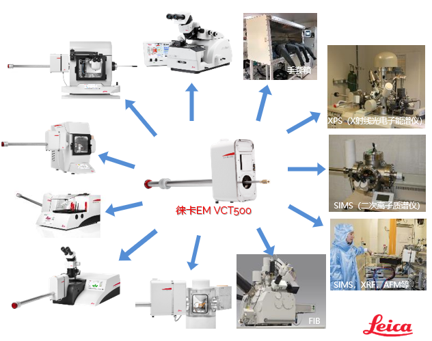 Leica EM VCT500與分析儀器真空樣品室連接示意圖