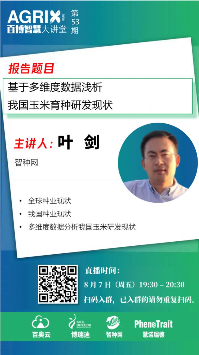 百博智慧大講堂自3月5日開播以來,短時(shí)間內(nèi)引起強(qiáng)烈關(guān)注。在已結(jié)束的直播中,哈佛大學(xué)/北京大學(xué)林澤川博士、中國農(nóng)業(yè)科學(xué)院作物科學(xué)研究所肖永貴博士、東北農(nóng)業(yè)大學(xué)陳慶山教授、金玉良種劉定富董事長、明尼蘇達(dá)大學(xué)梁智凱博士、丹佛斯植物科學(xué)中心李茂博士、中國農(nóng)業(yè)科學(xué)院作物科學(xué)研究所金秀良研究員、北京農(nóng)林科學(xué)院溫常龍博士、華中農(nóng)業(yè)大學(xué)楊萬能教授、百博智慧大講堂四位創(chuàng)始人王冰冰/張嘉楠/葉劍/韓志國、北京農(nóng)林科學(xué)院趙久然研究員、南京農(nóng)業(yè)大學(xué)/法國農(nóng)業(yè)科學(xué)院劉守陽博士、中國科學(xué)院植物生理生態(tài)研究所宋青峰博士、澳大利亞科學(xué)院鄭邦友博士、著名農(nóng)業(yè)評(píng)論員張?chǎng)?/strong>先生、法國農(nóng)業(yè)科學(xué)院Christophe Salon教授、中國科學(xué)院遺傳與發(fā)育生物學(xué)研究所農(nóng)業(yè)資源研究中心劉秀位研究員、內(nèi)布拉斯加大學(xué)林肯分校葛玉峰副教授、中國農(nóng)業(yè)科學(xué)院作物科學(xué)研究所徐建龍研究員、青島清原農(nóng)冠集團(tuán)研發(fā)總監(jiān)劉丙新先生、北京農(nóng)業(yè)信息技術(shù)研究中心張穎博士、中國農(nóng)業(yè)大學(xué)馬韞韜博士、山東省農(nóng)業(yè)科學(xué)院孫琦博士、中國科學(xué)院遺傳與發(fā)育生物學(xué)研究所田志喜研究員、華南農(nóng)業(yè)大學(xué)郭濤教授、武漢大學(xué)吳賢婷博士、云南省農(nóng)業(yè)科學(xué)院番興明研究員、中國農(nóng)業(yè)科學(xué)院作物科學(xué)研究所徐云碧研究員、華中農(nóng)業(yè)大學(xué)張建博士、明尼蘇達(dá)大學(xué)張峰博士、清華大學(xué)崔偉博士、華盛頓州立大學(xué)張志武教授、北京愛科農(nóng)科技有限公司郭建明、數(shù)溪科技馮欣欣、慕恩生物杜洪志、浙江大學(xué)岑海燕研究員、河南農(nóng)業(yè)大學(xué)喬洪波教授、中科智能吳曉偉博士、德國Julich研究中心Uli Schurr教授、西北農(nóng)林科技大學(xué)姜雨教授,東京大學(xué)郭威博士、西北農(nóng)林科技大學(xué)薛吉全教授、中國科學(xué)院海洋研究所相建海研究員、杭州電子科技大學(xué)張競成博士、美國愛荷華州立大學(xué)王立志博士,鴻翔種業(yè)有限公司薛守旺、浙江大學(xué)壽惠霞教授、北京屯玉種業(yè)郭婷婷、中種國際種子有限公司張春震、澳大利亞阿德萊德大學(xué)陸昊博士、長沙百奧云數(shù)據(jù)科技有限公司總經(jīng)理王冰冰和慧諾瑞德(北京)科技有限公司總經(jīng)理韓志國帶來了52場(chǎng)精彩的報(bào)告。