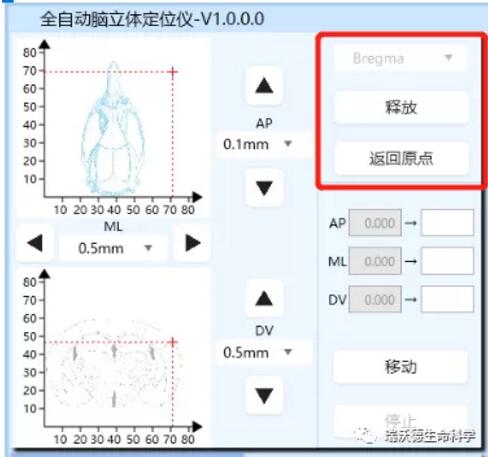 當使用定位儀到達Bregma/Lambda位點時可以標記,一鍵設定Bregma/Lambda位點。