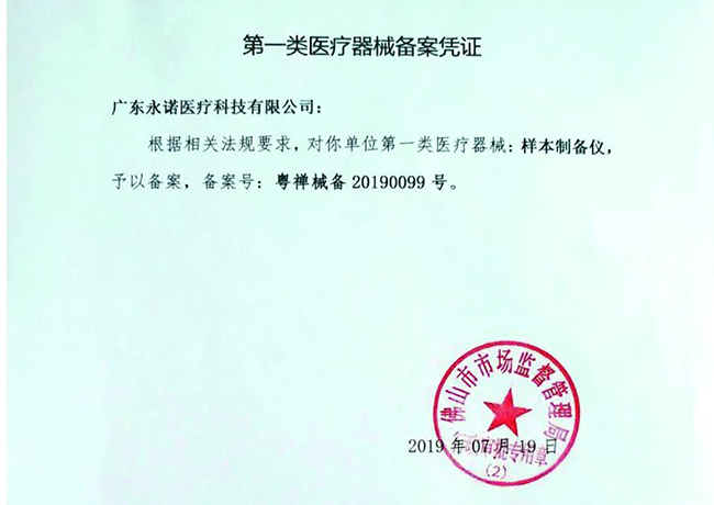 廣東永諾醫療科技有限公司是永諾生物旗下的子公司,永諾生物以中國智造為己任,2017年10月永諾生物成功研發了國內首款擁 有完全自主知識產權的MicroDrop®微滴式數字PCR系統并投入生產,已建成符合GMP標準的分子診斷試劑及產品車間3000㎡,已聯合廣 東順德創新設計研究院成立工程技術中心,聯合香港中文大學深圳研究院成立研發實驗室,累計申請國家發明專利22項,授權13項,目 前數字PCR儀器及配套試劑、數字PCR腫瘤液體活檢試劑盒等正在申報醫療器械注冊證,能廣泛應用于科研、醫療、食品安全、出入境 檢驗檢疫等領域。