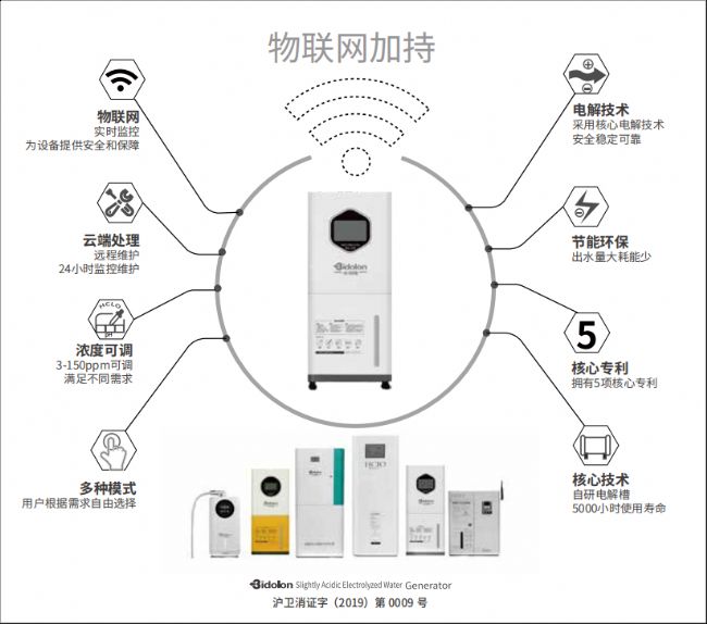 必多隆系列次氯酸水發生器是本公司設計、研發、制造的新型互聯網智能型高科技消毒水制取設備,采用自主研發的無隔膜電化學技術,必多隆次氯酸發生器開機 1-3 秒即可快速制取次氯酸水,濃度可調,濃度在3-150ppm之間,具有安全、高效、便利、經濟的特點。