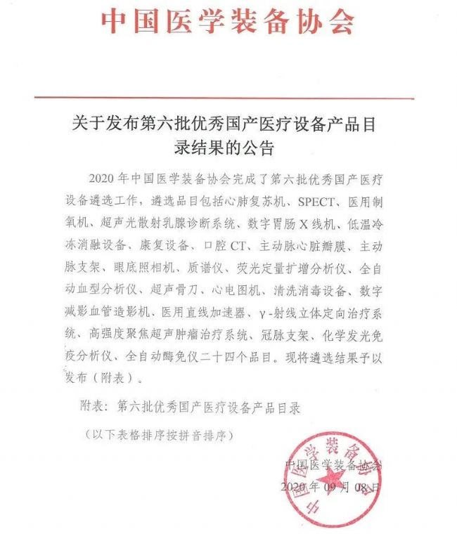 優(yōu)秀國產(chǎn)醫(yī)療設(shè)備遴選工作是在國家衛(wèi)健委規(guī)劃與信息司委托下,由中國醫(yī)學(xué)裝備協(xié)會遴選,通過廠家申報、專家評定、使用單位調(diào)研,評選過程嚴(yán)格規(guī)范,評選指標(biāo)制定嚴(yán)謹(jǐn),評選結(jié)果也充分體現(xiàn)了各個廠家的真實實力,不僅對設(shè)備購買方有極大的參考價值,也是對入選企業(yè)實力的一個有力佐證!