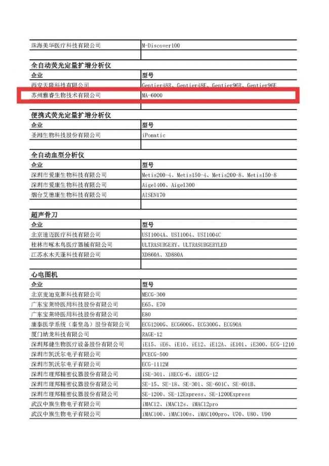 2020年9月8日,中國醫(yī)學(xué)裝備協(xié)會公示優(yōu)秀國產(chǎn)醫(yī)療設(shè)備產(chǎn)品(第六批)遴選結(jié)果,雅睿生物MA-6000實時熒光定量PCR儀成功入選,這也是優(yōu)秀國產(chǎn)醫(yī)療設(shè)備產(chǎn)品關(guān)于PCR類產(chǎn)品的首次遴選。