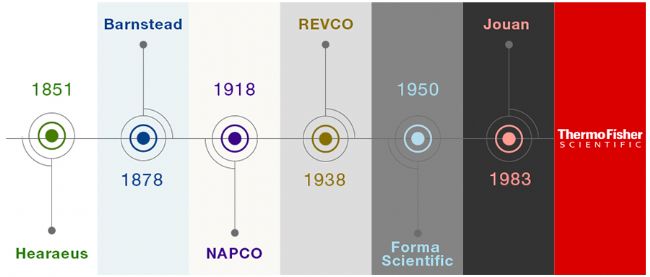 賽默飛CO2培養(yǎng)箱家族的歷史,最早可以追溯到1851年問世的品牌,在之后長達近兩個世紀的時間長河中,一代代科研人又融合了Barnstead,NAPCO,REVCO、Forma Scientific等多品牌的卓越技術(shù)和專長。
