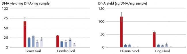 配備升級抑制劑去除專利技術IRT試劑,無需更換純化柱也無需反復洗滌,加入專利試劑后混合離心1分鐘徹底去除96個樣本中的抑制劑。實驗表明,該試劑盒純化表現與DNeasy PowerSoil Pro Kit一致。
