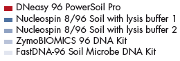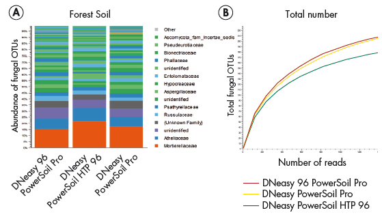 得益于對樣本中所有微生物包括真菌的等效裂解以及PCR抑制劑徹底去除,經DNeasy 96 PowerSoil Pro Kit純化所得NGS下游實驗結果可獲得更高的alpha diversity且符合真實微生物比例。