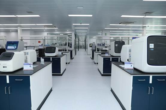 位于體驗(yàn)中心3層的生命探索中心里陣列了眾多生命科學(xué)研究的關(guān)鍵“重器”,包括擁有智能雙磁頭的KingFisher Apex核酸提取系統(tǒng);被稱為“測(cè)序標(biāo)配”Qubit系列核酸定量儀;可遠(yuǎn)程控制變溫快速的Veriti Pro PCR儀;配備聲波聚焦技術(shù)的Attune Nxt流式細(xì)胞儀(上樣速度提高10倍);能夠動(dòng)態(tài)觀測(cè)活細(xì)胞的Evos M7000顯微成像儀;測(cè)序金標(biāo)準(zhǔn)的3500 Dx和SeqStudio基因分析儀(一代測(cè)序儀)以及已獲得歐盟、美國和中國認(rèn)證,在遺傳疾病分析領(lǐng)域應(yīng)用廣泛且的GeneChipSystem3000 Dx2基因芯片平臺(tái)等等。同時(shí)也配備了整套的輔助工具和設(shè)備,包括專門的樣品儲(chǔ)存室、離心室以及樣品制備區(qū)等,堪稱全流程的前沿研究交流平臺(tái)。