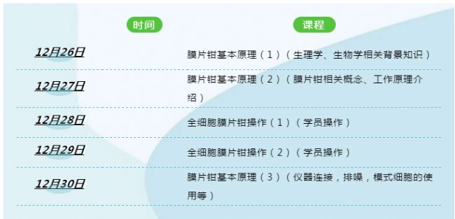 由東樂自然基因生命科學公司及青島海威磐石生物醫藥科技有限公司聯合主辦的第30屆膜片鉗線下實操培訓班將于2020年12月26-30日在青島大學醫學部舉辦,為期五天。期待您來深造交流學習。