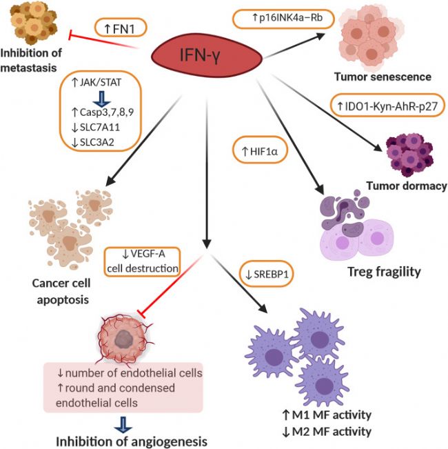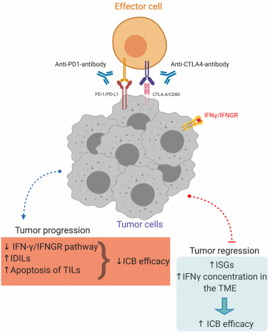 IFN-γ有助于提高腫瘤的免疫治療效果。 抗PD-1抗體和抗CTLA4抗體在癌癥治療中的功效可通過(guò)IFN-γ的調(diào)控而改善或減弱。