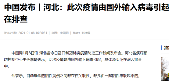 據(jù)河北省疾控中心發(fā)布信息顯示,此次疫情疑似由國(guó)外輸入病例引起,與歐洲毒株高度同源。其實(shí),之前已有北京、成都、山西等多地報(bào)道類似案例,境外輸入人員隔離14天期滿后被確診陽(yáng)性,進(jìn)而導(dǎo)致局地疫情爆發(fā)。