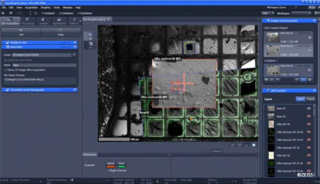 2021年,隨著蔡司冷凍關(guān)聯(lián)工作流程的發(fā)布,蔡司為生命科學(xué)研究團(tuán)體提供了一種新的軟硬件結(jié)合的冷凍顯微鏡解決方案。該工作流程將寬場顯微鏡、共聚焦顯微鏡和雙束電鏡(FIB-SEM)無縫地連接起來,且便于使用。該解決方案提供了針對(duì)冷凍關(guān)聯(lián)工作流程需求而優(yōu)化的硬件和軟件,從熒光大分子的定位到高襯度體積成像和用于冷凍電子斷層成像的薄片減薄。