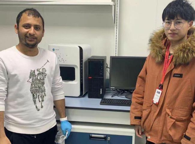 (圖為我司售后服務(wù)工程師為該院約翰老師進行儀器操作演示)