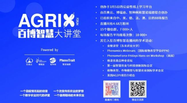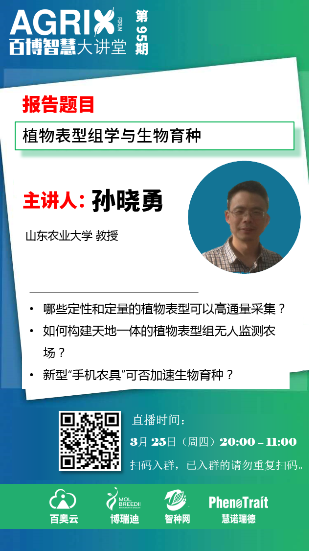 為幫助大家了解知識(shí)產(chǎn)權(quán)保護(hù)、育種研發(fā)服務(wù)、種質(zhì)資源托管、基因型分型、基因編輯、表型組學(xué)、人工智能和育種大數(shù)據(jù)等前沿技術(shù),同時(shí)也為同行們相互交流提供更多的機(jī)會(huì),由百奧云、博瑞迪、智種網(wǎng)和慧諾瑞德等新銳力量秉持資源整合、平臺(tái)共享、匯聚眾智、創(chuàng)新引領(lǐng)的原則,聯(lián)合組織公益性線上學(xué)習(xí)平臺(tái)——百博智慧大講堂,邀請(qǐng)行業(yè)經(jīng)驗(yàn)豐富的專家、老師進(jìn)行線上交流,共同探討新形勢(shì)下種業(yè)發(fā)展思路,共同“破冰”。