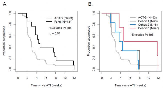 研究結(jié)果:這項(xiàng)研究發(fā)現(xiàn)回輸CD4 T細(xì)胞耐受性良好,沒(méi)有嚴(yán)重的不良事件。HIV功能性治愈的金標(biāo)準(zhǔn)是試驗(yàn)性停藥后病毒反彈時(shí)間推遲。與歷史對(duì)照相比,觀察到病毒反彈時(shí)間略有延遲;14個(gè)人中有3個(gè)人,似乎在最終反彈之前恢復(fù)了對(duì)病毒血癥的控制(其中2個(gè)為CCR5Δ32雜合子)。