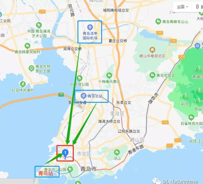 ●青島北站:地鐵3號線,青島北站上車——五四廣場換乘地鐵2號線——利津路站C口出——221路公交車利津路遼寧路站上車——廣饒路站下車——步行150米即到;