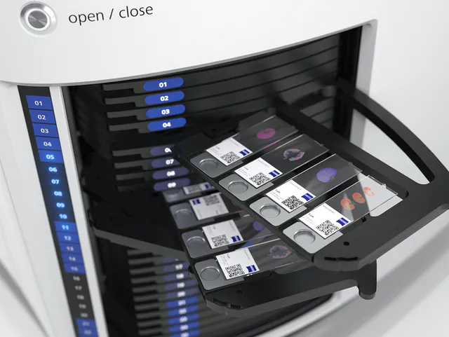 蔡司Axioscan 7可一次性對100張相似樣品或混合多種應用的樣品進行數字化采集