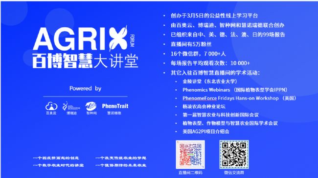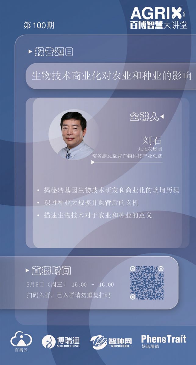 為幫助大家了解知識產權保護、育種研發服務、種質資源托管、基因型分型、基因編輯、表型組學、人工智能和育種大數據等前沿技術,同時也為同行們相互交流提供更多的機會,由百奧云、博瑞迪、智種網和慧諾瑞德等新銳力量秉持資源整合、平臺共享、匯聚眾智、創新引領的原則,聯合組織公益性線上學習平臺——百博智慧大講堂,邀請行業經驗豐富的專家、老師進行線上交流,共同探討新形勢下種業發展思路,共同“破冰”。