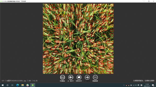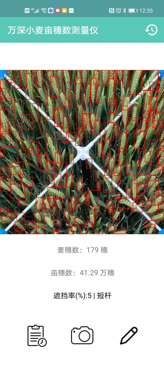 該系統提供有藍牙自拍桿和2組長短桿尺寸自動標定組件,可用任意手機拍照,且拍攝成像視角能被自動矯正,避免了拍照形變誤差,能做計數結果的交叉驗證。照片導入電腦后大批量自動數穗分析,也可在安卓手機拍照直接分析或批量處理,全自動智能計數拍照范圍內的麥穗數、麥穗數平均值和按標定面積自動估算畝穗數。其具有遮擋率和靈敏度補償特性,對小麥在楊花期、灌漿期、半成熟期的數麥穗誤差<±4%,可縮放圖像查看和點擊修正,以達100%正確數穗。自動導出生成EXCEL格式報表,支持數據的進一步篩選、編輯和分享。