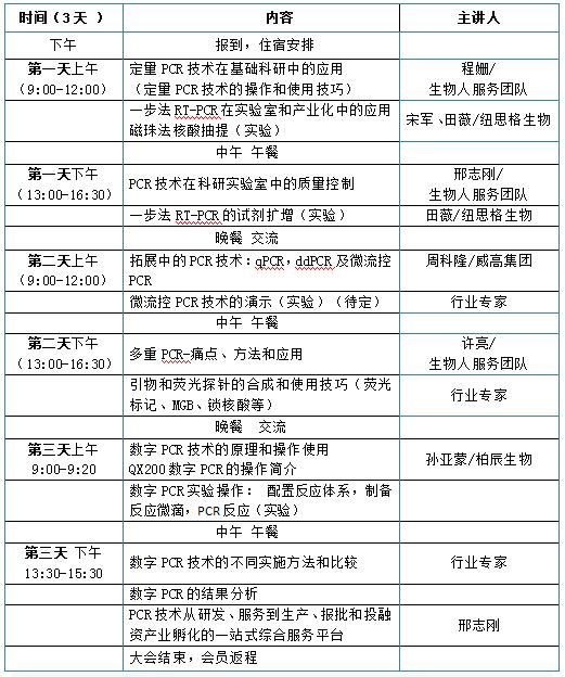 時至今日,最初的PCR技術已經演變為熒光定量PCR、微流控PCR和數字PCR...等眾多花樣繁多的技術被廣泛使用,而眼下我們正處在一個PCR技術更新迭代的時刻,尤其是數字PCR是近幾年涌現的“新星”,估計很多技術人員都是“只聞其聲、不見其面”,對這些技術還沒有真正體驗過,為此我們生物人基地特地安排了這次“PCR技術深度學習研討交流會”,學員一方面聆聽行業專家的心得分享,另一方面還要親自動手體驗,并對結果進行現場分析,有切實直觀的感受,整個會議安排將PCR技術從實驗室到產業化應用給大家做詳細的剖解,對技術有一個全面的認識,相信您一定會有所收獲!