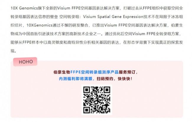 伯豪生物FFPE 空間轉(zhuǎn)錄組內(nèi)測福利再不約就晚了!