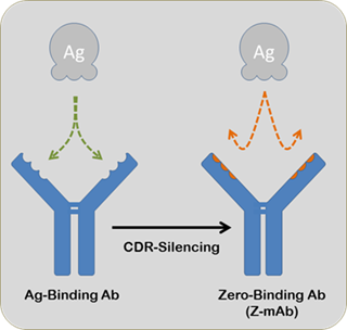 - Z-MAB® 抗體不再有結合抗原的活性,卻還完整保留Fc的效應功能(Effector functions)