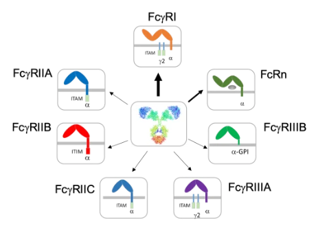B.各種Fc受體(FcR) 用于追蹤抗體的效應功能(Effector functions)