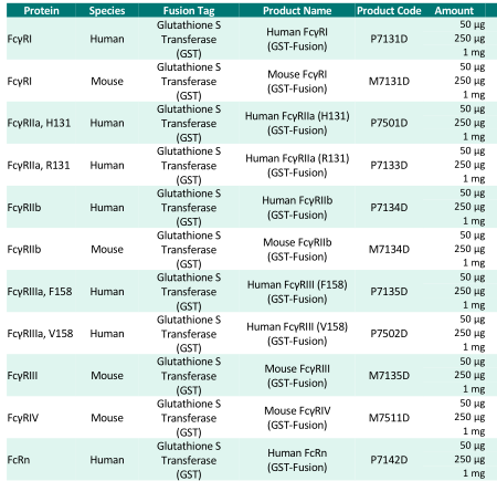 - 產品包括各種人類Fc受體,小鼠Fc受體及其同種共型受體(Allotype)