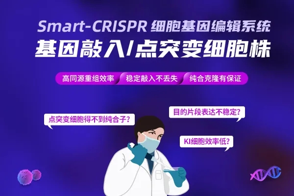 賽業生物基因敲入與點突變細胞株使用自主開發的Smart-CRISPR™細胞基因編輯系統,采取更有效的設計方案,高同源重組效率和無隨機插入細胞基因組的風險,適用于多種細胞,成功率高,經大量測試和優化后的實驗工藝,更快交付基因敲入和點突變細胞株,加速您的實驗進展!