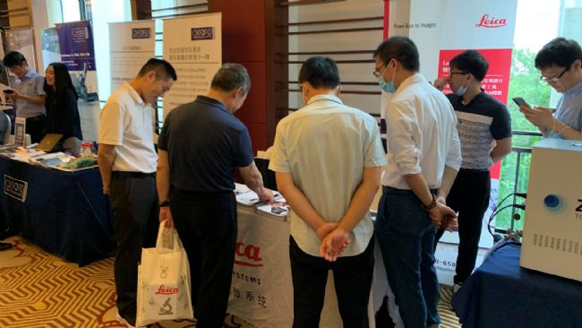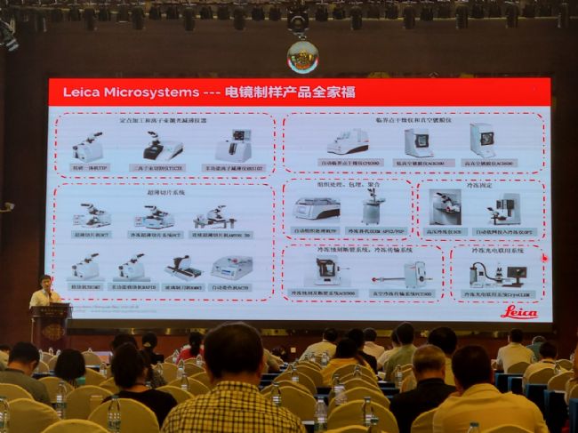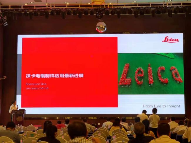 研討會中徠卡資深電鏡制樣應(yīng)用專家,就生命科學(xué)領(lǐng)域和材料領(lǐng)域最新電鏡制樣應(yīng)用進展做了相關(guān)報告,并在徠卡展臺與電鏡技術(shù)專家進行了深入技術(shù)交流。