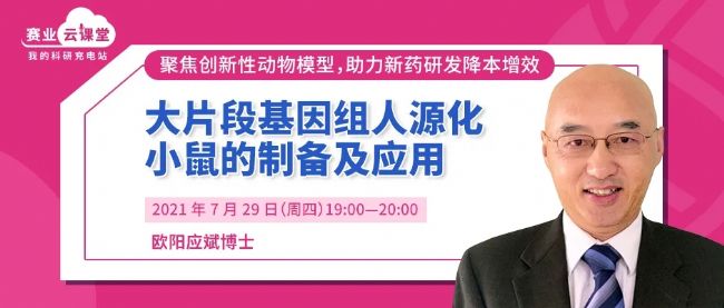 那么為什么要制備大片段基因組人源化小鼠?大片段基因組人源化小鼠有哪些應用?制備大片段基因組人源化小鼠有哪些技術難點?該如何突破?敬請關注7月29日(周四)晚七點賽業生物云課堂,賽業生物高級科學家歐陽應斌博士將為大家一一講解。參與課程互動還有機會抽中賽業生物精美禮盒一份,快長按下方二維碼免費報名參加課程吧!