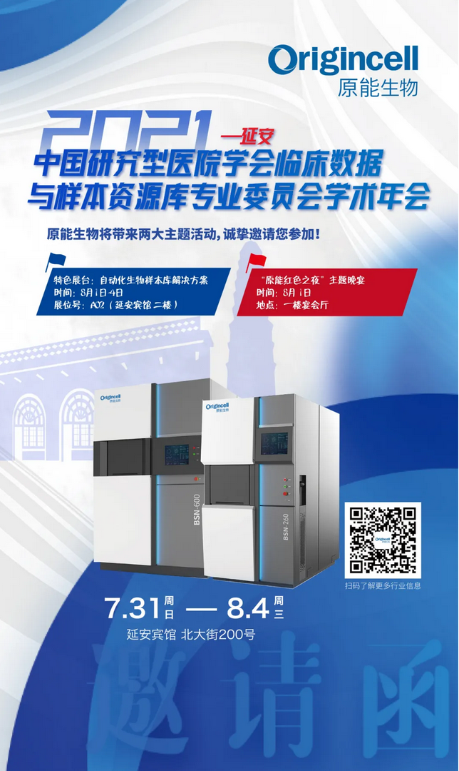 現(xiàn)場,原能生物將在A02號設(shè)置展臺,帶來自動化生物樣本庫解決方案;并冠名本次年會晚宴,以”原能紅色之夜“的主題,在“兩個一百年”的歷史交匯點,用國人自主研發(fā)的高端自動化裝備向黨獻禮。