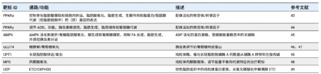 表 3. 用于糖尿病、心血管和其他獲得性代謝紊亂的有前景代謝靶標的示例
