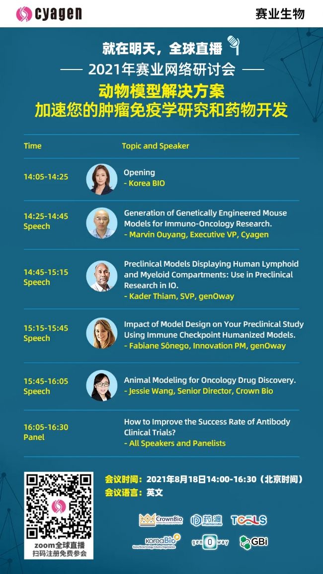 在此背景下,賽業有幸邀請到了世界各地的行業專家,來共同探討腫瘤免疫學臨床前研究所面臨的挑戰,并分享實踐經驗。