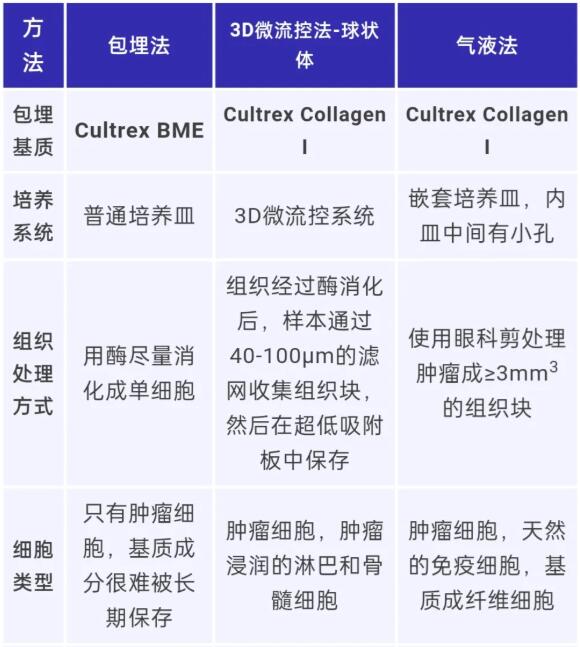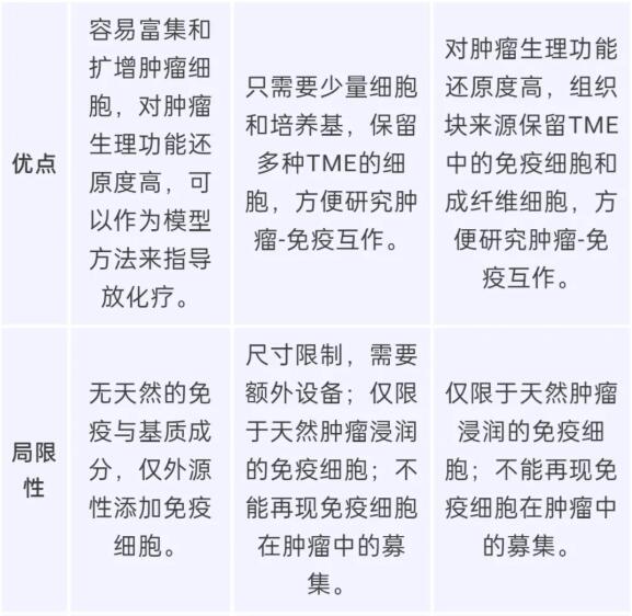 上述模型中使用的3種TME的3D培養方法分析如下: