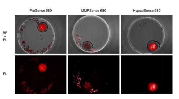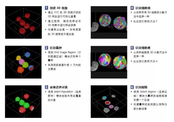 待類器官生長到合適的狀況下,進行藥物處理。利用自動化移液分液設備進行培養基更換,藥物處理。然后利用高內涵成像分析系統或者多模式檢測系統進行評價。對于類器官細胞活力檢測,可以通過多模式檢測系統進行基礎的評價。但是,針對類器官更加有意義的分析,是利用高內涵成像分析系統對類器官進行3D共聚焦成像,并結合分析軟件在3D層面上對類器官進行分析,可以從形態上反映出藥物的作用,而且可以詳細觀察類器官不同位置組織對藥物的反映。如下圖所示,可以評價藥物處理后,最右側3D微組織內側部缺氧部分對藥物敏感性有差異。