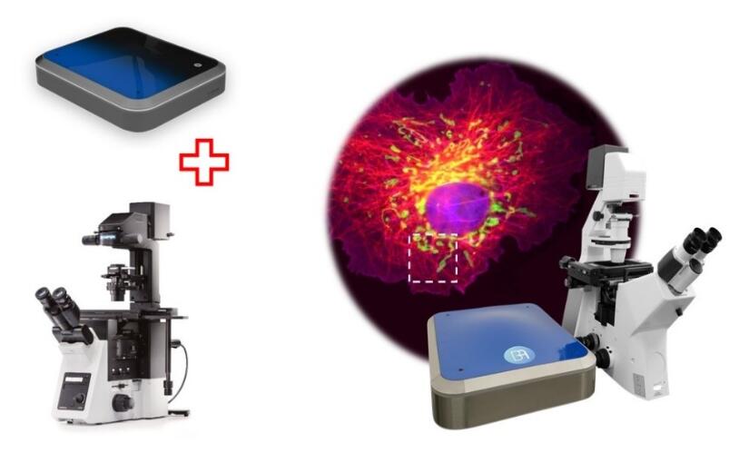 LiveCodim系統是一個高度兼容模塊化系統,能夠適配絕大多數的倒置熒光顯微鏡。升級后的超高分辨率顯微鏡不會破壞原有顯微鏡的功能,可以節約您的預算與空間,擴展原有成像系統的功能。