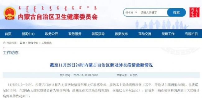 11月29日,內蒙古自治區報告新增本土確診病例21例,截至12月1日10時,內蒙古自治區現有本土確診病例132例,而滿洲里市則成為了此次疫情重災區。