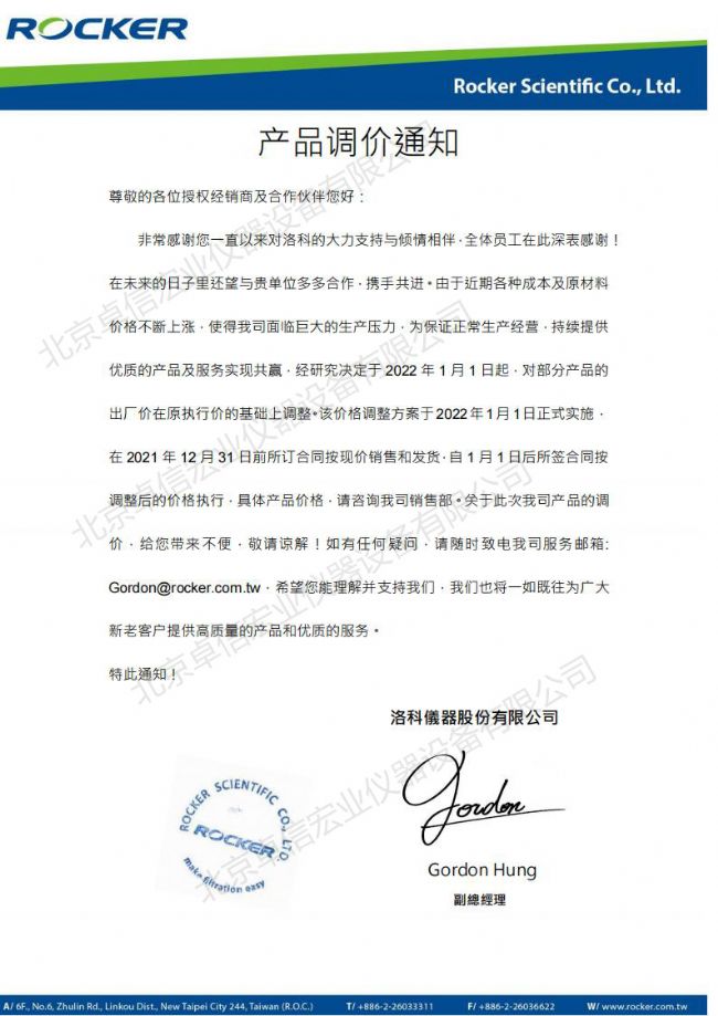 非常感謝您一直以來對洛科的大力支持與傾情相伴,全體員工在此深表感謝!在未來的日子里還望與貴單位多多合作,攜手共進。由于近期各種成本及原材料價格不斷上漲,使得我司面臨巨大的生產壓力,為保證正常生產經營,持續提供優質的產品及服務實現共贏,經研究決定于 2022 年 1 月 1 日起,對部分產品的出廠價在原執行價的基礎上調整。該價格調整方案于2022年1月1日正式實施,在 2021 年 12 月 31 日前所訂合同按現價銷售和發貨,自 1 月 1 日后所簽合同按調整后的價格執行,具體產品價格,請咨詢我司銷售部。