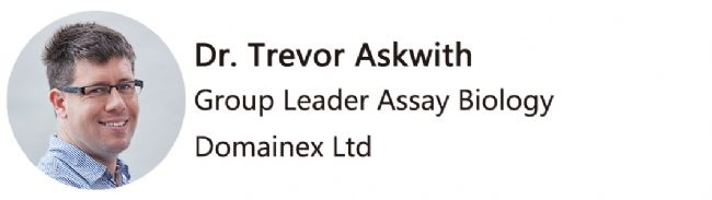 Trevor Askwith is a cell biologist and biochemist with over 10 years’ experience of small-molecule drug discovery research. He began is drug discovery career as a cell biologist at Novartis where and has more recently worked in academic drug discovery running leading the Assay Development and Screening in the Drug Discovery Group at UCL. Trevor is now the Group Leader for Assay Biology a Domainex responsible of the biophysics, biochemistry and cell biology departments.