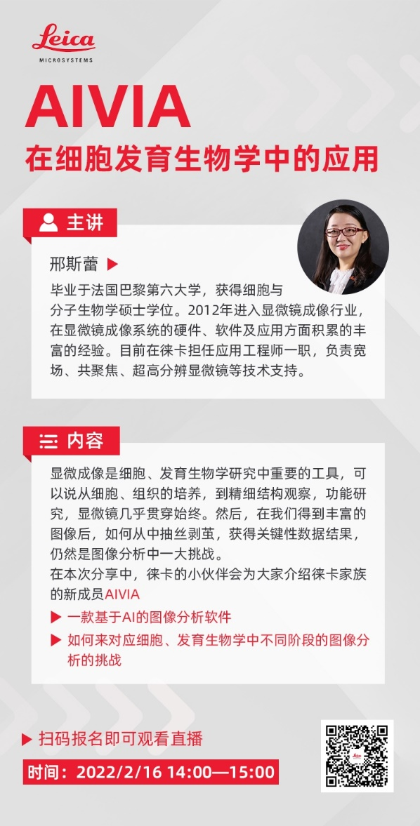 直播預告:徠卡AIVIA在細胞發(fā)育生物學中的應用