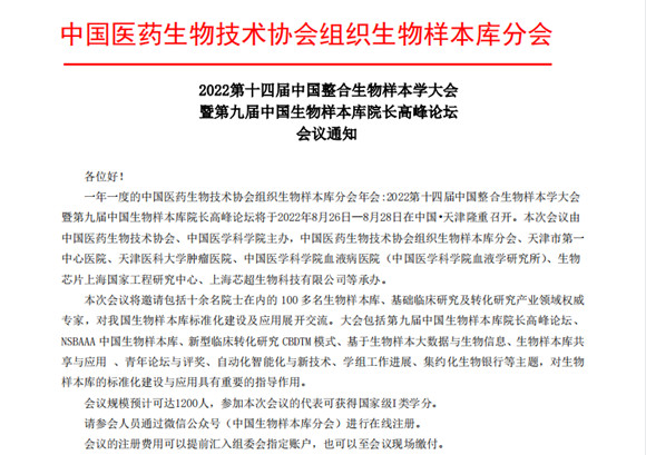 > 展會 > 2022第十四屆中國整合生物樣本學大會通知