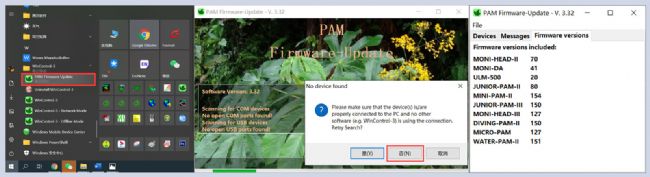 2.在未連接PAM機器的情況下,到開始菜單WinControl-3文件夾下運行Firmware Update程序