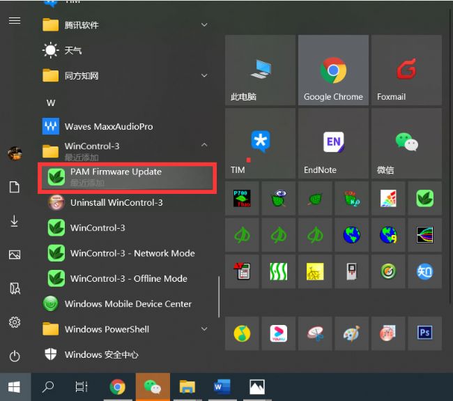 5.在連接PAM機器的情況下,到開始菜單WinControl-3文件夾下運行Firmware Update程序
