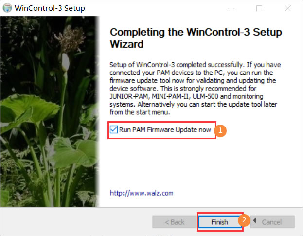3.下載并安裝最新的WinControl-3軟件V3.32。軟件安裝的最后一步勾選Run PAM Firmware Update now,點擊Finish。此操作可在軟件安裝完成后自動執行固件升級程序,升級程序啟動后會顯示進度,完成后自動結束。