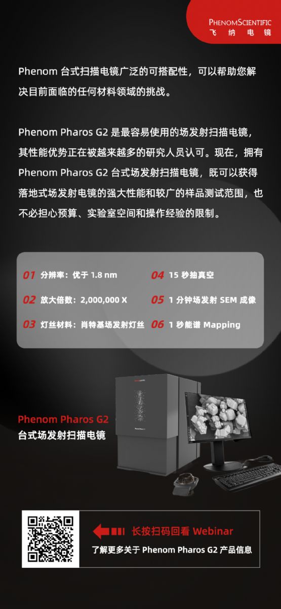 Phenom Pharos G2 臺式場發射掃描電鏡作為一款高效且易于使用的桌面式掃描電鏡,為各種材料提供高分辨率成像,也可以對各類電子束敏感樣品進行成像,將研究領域擴大到藥物、聚合物和有機材料等。